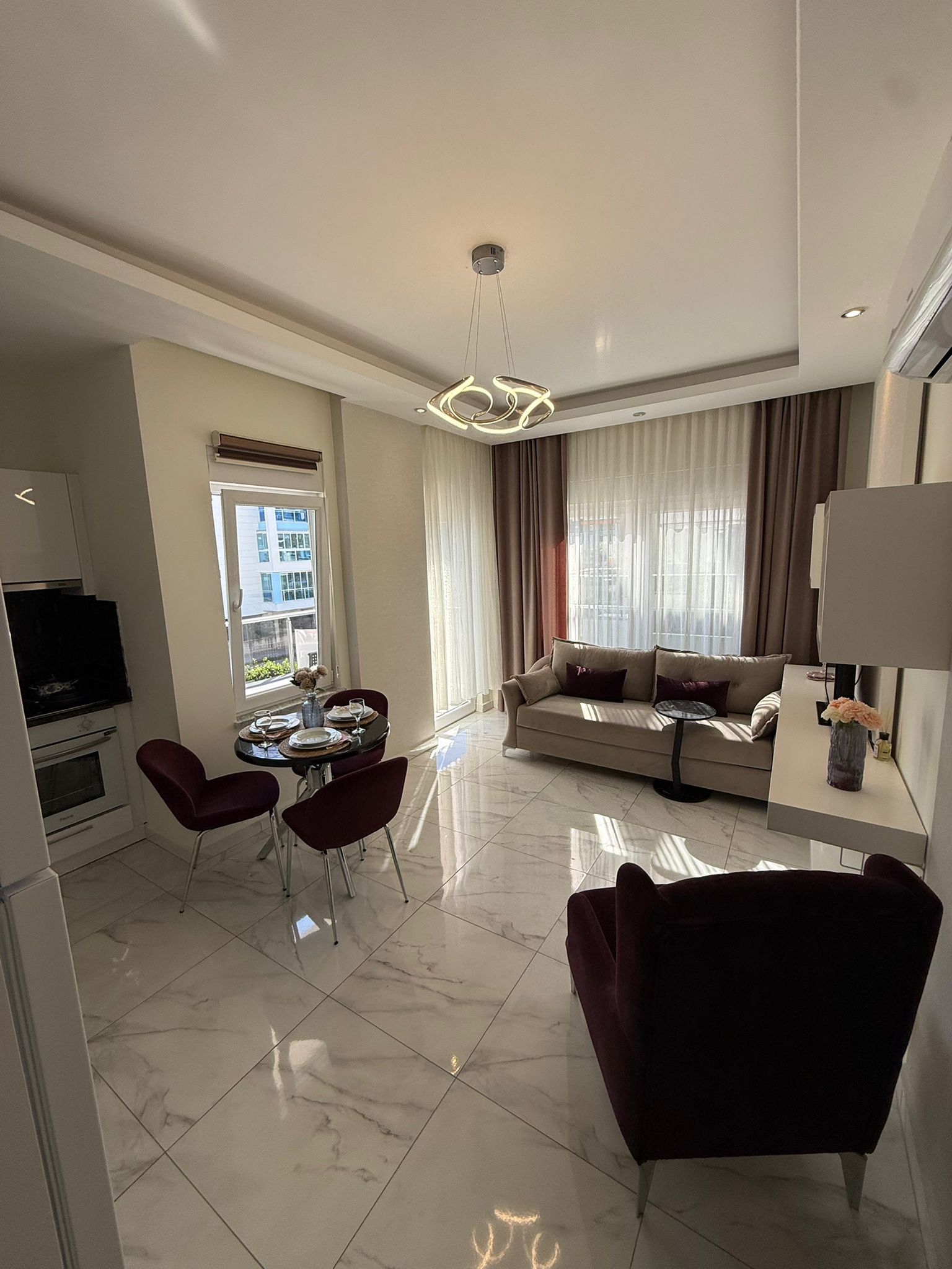 Modern yaşam alanı ve zengin site olanaklarıyla öne çıkan Calypso Residence içerisinde, taşınmaya hazır full konsept 1+1 daire kiralıktır.