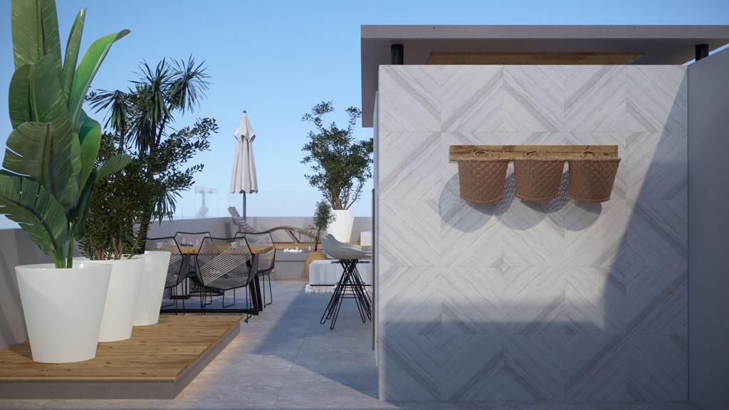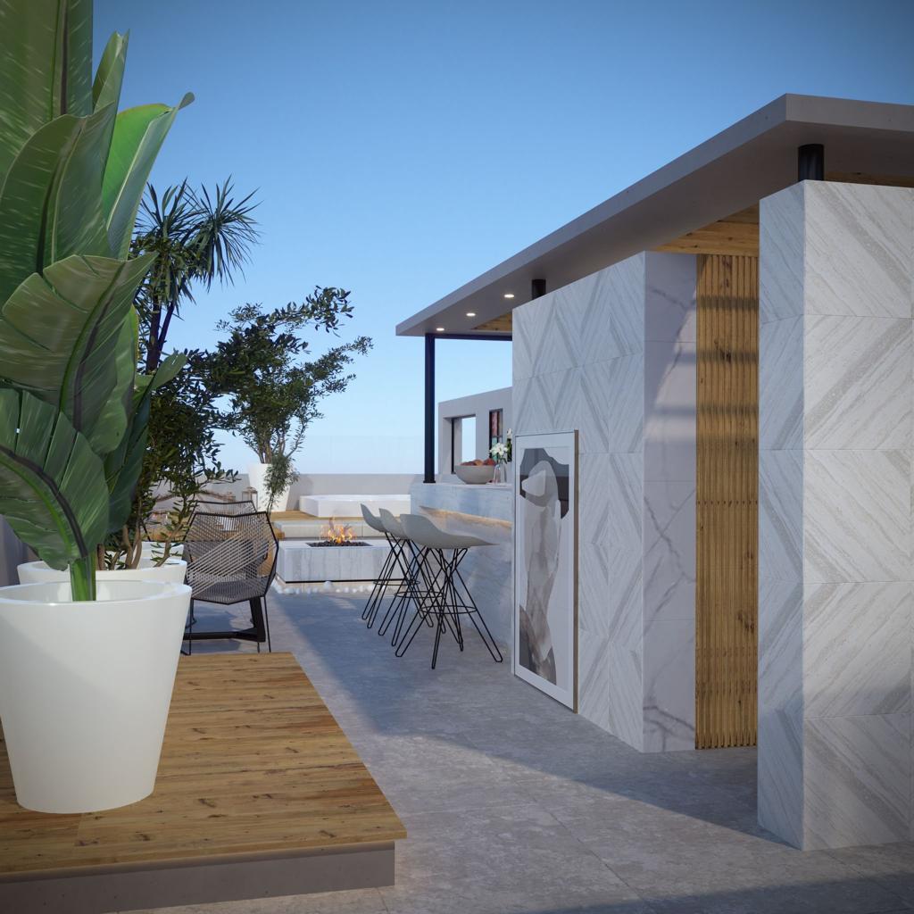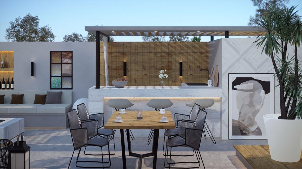 İkinci kattaki dairelerde barbekü içeren bir teras ve bir jakuzi satın alma imkanı bulunan bir mini mutfak bulunmaktadır.